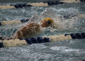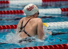 Indiana University’s Lilly King earned a victory in the A final of the women’s 200 breast with a time of 2:24.97 ahead of Emily Escobedo (2:26.56) and Melissa Rodriguez (2:27.35)
