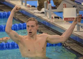 Florida Gator Caeleb Dressel easily earned the rights to lane four in the 100 free A final while his 100 fly rival, Texas Longhorn Joseph Schooling failed to make it