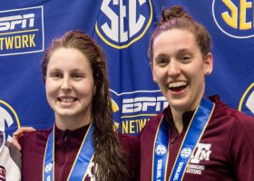 Friday evening at the SEC championships in College Station, Texas, Aggies Sydney Pickrem and Bethany Galat finished 1-2 in the women’s 400 IM to extend Texas A&M’s lead in the women’s team competition. Afterwards,