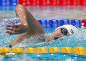 Auburn graduate Zane Grothe took the men’s 800 freestyle tonight with a solid in-season time of 7:56.69 while N.C. State’s Anton Ipsen took second with a 7:57.64. Clark Smith faded to third with his 8:00.70 while China’s Qiu