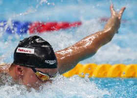 China’s Yan Zibei was the only swimmer to dip under the 1:00 barrier by posting a 59.84. The silver was awarded to Andrew Wilson with his 1:00.90 while Athens Bulldog Nic Fink went 1:01.40 for third.