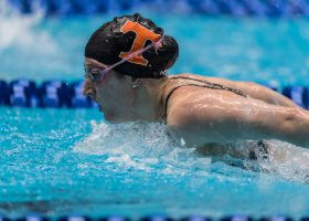 By Dan D’Addona. Halfway through a two day, double dual meet with Wisconsin and Tennessee, there have been some fast races by all three teams. The Auburn women are winning
