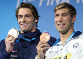France’s Camille Lacourt announced he would retire after Budapest and he closed his career out in style with his third straight World title in the 50 backstroke. Lacourt swam a