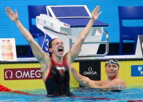 Sweden’s Sarah Sjostrom just missed her world record in the 50 free that she set last night in the semi-finals at the FINA World Championships in Budapest. Sjostrom swam the