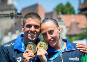 Italy claimed their first synchronized swimming gold medal of the 2017 FINA World Championships on day three of competition. The Italian duo of Manila Flamini and Giorgio Minisini claimed a narrow victory