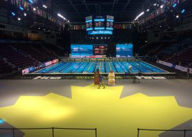 Canada’s Penny Oleksiak is understandably a favorite of the home crowd in Windsor, and she thrilled the crowd when she posted a time of 52.19 to tie with Australia’s Brittany Elmslie for
