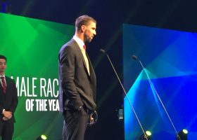 After breaking American records in the 500 free and 1650 free over the weekend, Katie Ledecky jetted to New York for the annual Golden Goggle awards. Before she was named Female Swimmer of