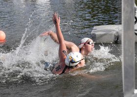 This morning swimmers dove in for the first CSCAA National Collegiate Open Water Championships. There were 35 women in the women’s field and 33 on the men’s side. With a remarkable