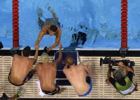 Men’s 200 Breast FINAL: The men’s 200 breaststroke final went off in true Olympic upset fashion. Swimming in lane eight, Kazakhstan’s Dmitriy Balandin surged ahead in the final 25-meters of the