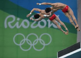 By Erin Keaveny, Swimming World College Intern In the men’s synchronized 10m diving China’s Chen Aisen and Lin Yue took home the second diving gold, coming in above David Boudia