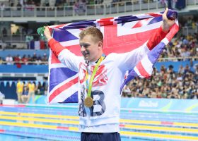 Adam Peaty of Great Britain charged off the blocks with the fastest reaction time of the men’s 100 breast final. The young Brit jumped to an immediate lead and never