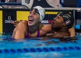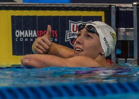 Connor Jaeger set a U.S. Open record in the men’s 1500 free Sunday evening at Olympic Trials, but he had to hold off a hard charge from Jordan Wilimovsky over the second half