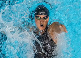 USA’s distance queen Katie Ledecky jumped ahead of the competition to begin a battle with her own World Record. At the halfway mark the young superstar was just over a second ahead