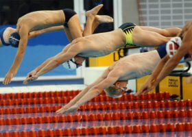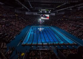 In tonight’s 100 freestyle final Abbey Weitzeil was .07 ahead of Simone Manuel at the 50 meter mark and the two touched in first and second at the finish. Weitzeil became a first time Olympian