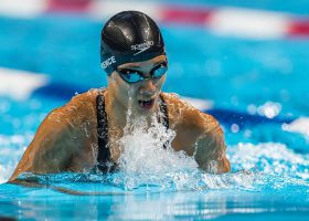 In London Micah Lawrence was sixth in the 200 breaststroke. The 25 year old swam a 2:26.27 for the top seed this morning in Omaha. Texas A&M’s Bethany Galat had an excellent back half