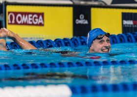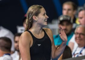 Women’s 200 Free Semi-Finals: Unsurprisingly Katie Ledecky jumped to the lead early in the second heat of semi-finals, splitting a time of 56.73 before cruising to a final time of 1:55.10. Ledecky, who