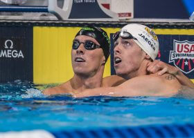 Kevin Cordes was out under American record pace and held on to get to the final wall first in 59.18. Just behind was Badger Swim Club’s Cody Miller in 59.26. The two will head