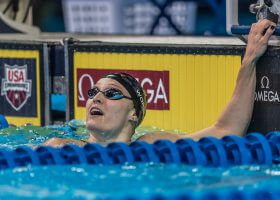 This morning’s leader Olivia Smoliga was first to the wall in 59.16, a new personal best and the fifth best in the world this year in the 100 backstroke. SwimMAC’s Kathleen Baker led the second