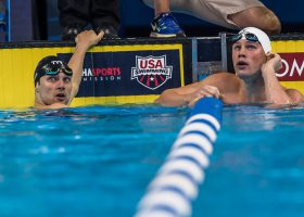 Chase Kalisz claimed his Olympic berth after finishing first in the men’s 400 IM. He touched the wall in 4:09.54, just off his personal best time of 4:09.22. Coach Bob Bowman knows Kalisz can