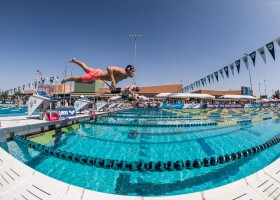 After an incredibly windy day two, the weather here in Mesa, AZ warmed up for day three prelims of the 2016 Arena Pro Series Mesa. Peter Bick, Swimming World’s chief photographer, and