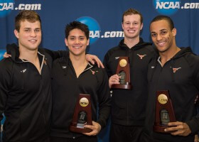 It’s not quite the amazing six A finalists like last year, but Texas went two up, two down as Joseph Schooling led men’s 100-yard fly qualifying at the 2016 NCAA