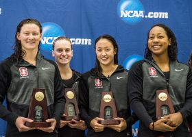Stanford followed up Ella Eastin’s NCAA and American record in the 200-yard IM with an American and NCAA mark in the women’s 400-yard medley relay at the 2016 NCAA Division