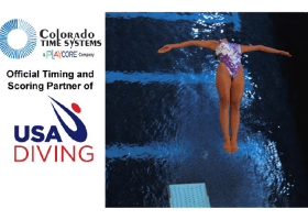 USA Diving has announced their equipment provider of choice for several elite events this year. Colorado Time Systems, a PlayCore company, will be providing equipment and personnel to run the