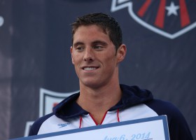 California’s Ryan Murphy talked with the media after winning the 100 back at the 2016 Arena Pro Swim Series Orlando. Murphy just missed his top time this year (53.46) with