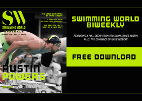 Swimming World Biweekly Magazine is now available for readers to download for FREE! Download the current issue to catch up on the latest top news stories including Katie Ledecky’s World