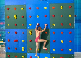 Designed by Spectrum Aquatic Engineers, the Kersplash® pool climbing wall is made of a sturdy, single-piece commercial grade frame. Its unique design exceeds multi-piece construction in wind-loading, ease of installation,