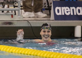 Caitlin Leverenz of Cal held off the competition in the women’s 200 IM posting a final time of 2:11.24. Leverenz’s time better the pool record of 2:11.53 set by Ariana