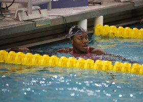 Simone Manuel, swimming unattached, grabbed first in the women’s 100 free with a final time of 54.19. Manuel’s time lowered the pool record from its former 54.27, set in