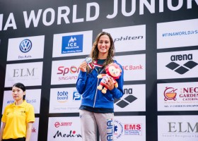 New Zealand’s Gabrielle Fa’Amausili moved to seventh in the world with a World Junior record in the women’s 50-meter back finals at the 2015 FINA World Junior Championships. Fa’Amausili unleashed
