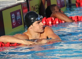 Daniil Pakhomov of Russia dashed to a first-place seed in prelims of the men’s 100-meter fly posting a final time of 52.96. Pakhomov added slightly to his time of 52.13 so