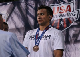 Nicholas Dos Santos unleashed a sizzling men’s 50-meter fly at the 2015 Jose Finkel Trophy meet. Dos Santos, already second in the world with a 22.90 at the Maria Lenk