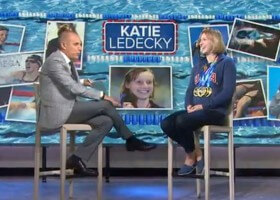 Katie Ledecky stopped by Rockefeller Plaza in New York City today for her first Stateside interview after what most would call a stellar week at the FINA world championships in