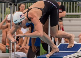 Weeks after winning her first international gold medal at the Pan American Games, Katie Meili returned to domestic waters and captured her first National title in San Antonio. Meili clocked