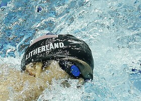 Mark Tewksbury, Canada’s 1992 Olympic gold medalist in the 100-meter backstroke, was honored with his picture in bright lights as part of the Canada Olympic Excellence Day in Montreal. Tewksbury
