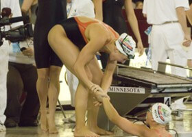 By Jason Marsteller MINNEAPOLIS, Minnesota, March 9. CALIFORNIA's Jessica Hardy defended her 100 breast title with a 59.43 at the women's NCAA Division I Championships. She also became just the