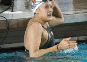 By Jason Marsteller MINNEAPOLIS, Minnesota, March 9. AUBURN battled back a bit as Rachel Goh defended her 100 back title from last year with a first-place time of 51.97. She