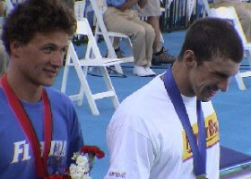 By Phillip Whitten LONG BEACH, Calif., July 12. SO Michael Phelps, beaten by Aaron Peirsol in the 200 meter backstroke, is not really Superman. But he may be Superman's cousin.