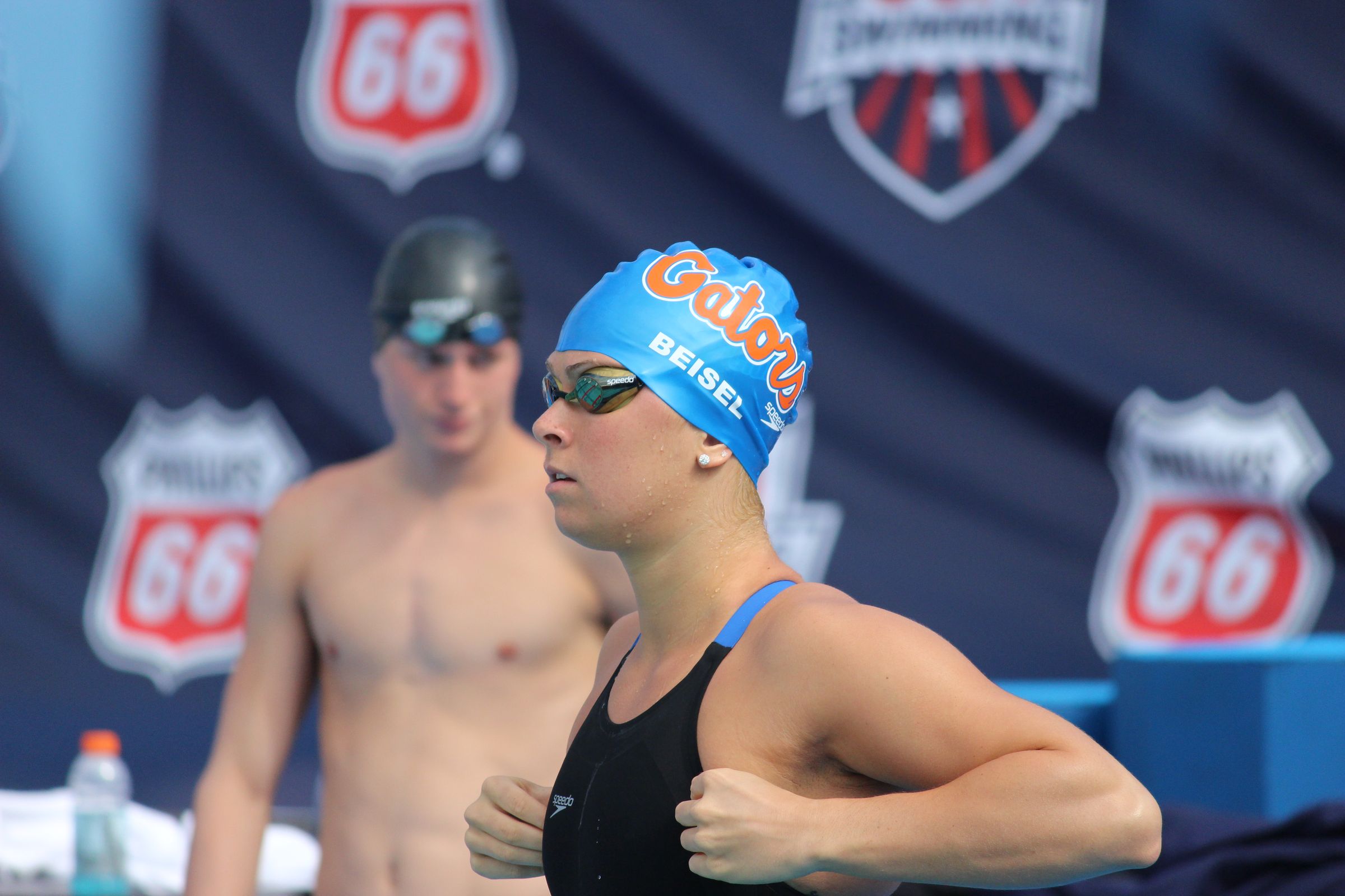Elizabeth Beisel, swimming for Gator Swim Club, took second in 1:43.91. That’s a huge time drop for Beisel considering she hadn’t broken 1:46 until this morning as she had a personal best of 1:46.05 from 2008.