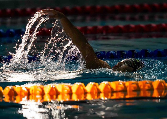 LOOK WHO’S BACK: 2008 Beijing Olympian Ashley Delaney back in the pool at the Queensland Championships. Photo Courtesy Wade Brennan (Swimming Queensland).
