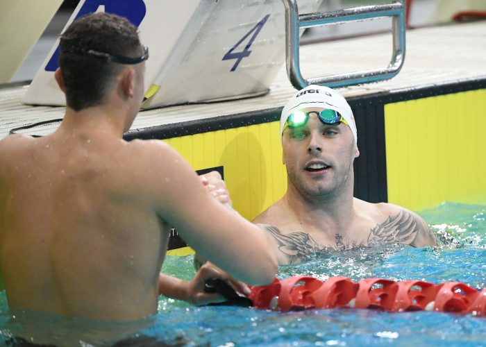 Kyle Chalmers and Flynn Southam post 47s. Photo Courtesy Delly Carr Swimming Australia
