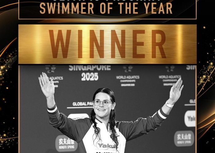 McKeown was joined by her fellow Singapore flyers and world championship gold medallists and fellow Queenslanders Moesha Johnson, named Open Water Swimmer of the Year; Callum Simpson the Paralympic Program winner and Lani Pallister the Short Course Swimmer of The Year – all capping off extraordinary 2025 campaigns.