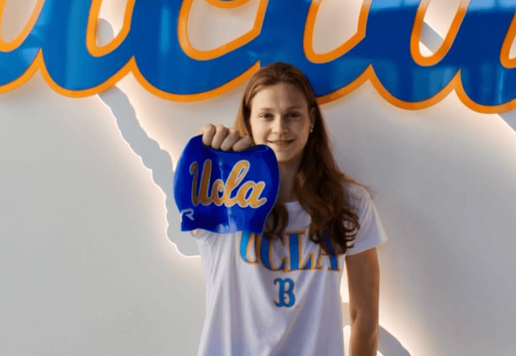 “I am extremely excited and honored to announce my verbal commitment to continue my academic and athletic journey at UCLA! I am very grateful for my family’s endless love, support, and encouragement. I want to thank Coach Alessio and Coach Jeff for always helping me and pushing me to become the best version of myself. To my teammates, thank you for being the best team ever. I would not be where I am without you all. Finally, a special thank you to Coach Jordan, Coach Graham, and Coach Bex for believing in me and welcoming me into the Bruin family–I can hardly wait! GO BRUINS!!!”