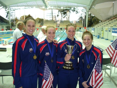 The U.S. received its finest showings from Teresa Crippen in the 400 individual medley and from its 800-meter freestyle relay. Crippen, who trains with the Germantown Academy Aquatic Club, clocked 4:49.49 and led an American sweep of the top three places. Caitlin Leverenz followed in second place in 4:52.71 and Jessica Rodriquez was third in 4:52.76.
