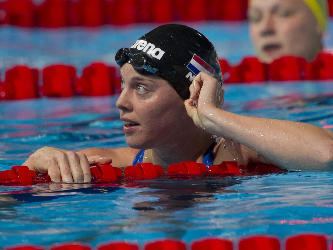 Although everyone seems to be biding their time, waiting for Sweden’s sprint star Sarah Sjostrom to unleash a monster 100 free time after posting a second-ranked 52.73 earlier this year, The Netherlands’ Femke Heemskerk stole some of that thunder with a 53.66 this evening in semis. That swim is just off her fourth-ranked 53.39 from the same meet Sjostrom posted her 52.73 – Eindhoven Swim Cup, and is close to Britta Steffen’s meet record 53.30 from well back in 2006.