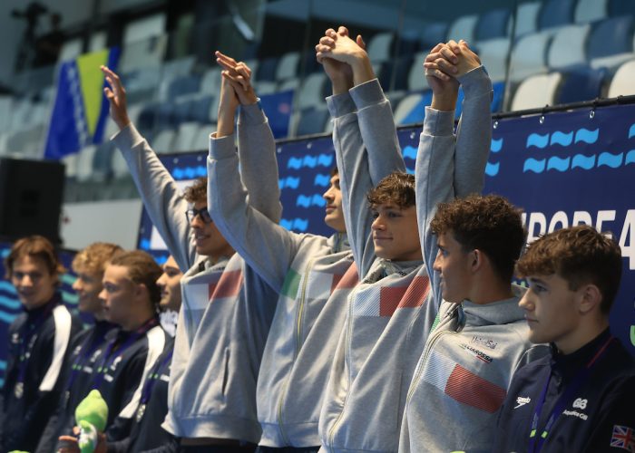 Chiara Sama (56.27), Sara Curtis (54.74), Cristiana Stevenato (55.12) and Caterina Santambrogio (54.99) combined to come home in 3:41.12 with France clocking 3:41.13 with Germany third in 3:41.60.