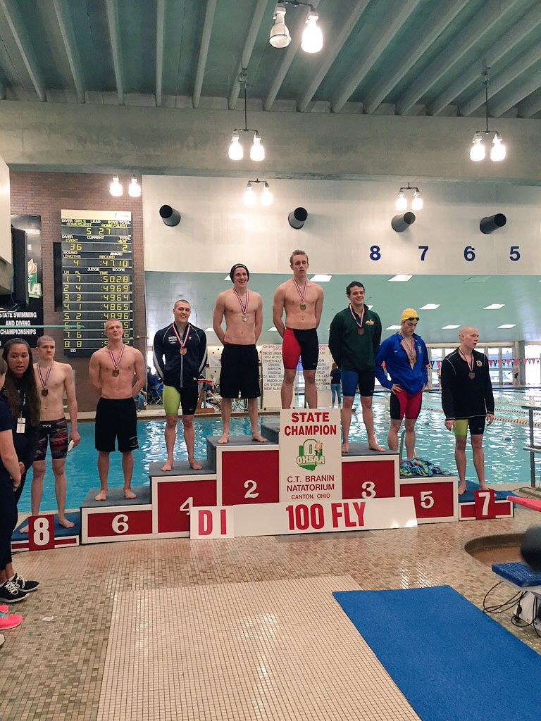All the way from California, Reid came to watch the OHSAA State Meet for ideas and inspiration. Reid commented on the meet, “It’s one of the most exciting high school meets I’ve been to. When you put an indoor, stadium atmosphere and amazing swimmers the state has together, this is what high school swimming is all about. It’s fast, it’s loud, and there’s a ton of spirit.”